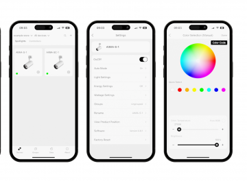 La gestione della luce è resa semplice e intuitiva grazie all’app AIMIA, disponibile su App Store e Google Play. Con pochi tocchi è possibile regolare intensità, temperatura colore, creare scene luminose personalizzate o controllare gruppi di faretti in sincronia. È un sistema pensato per offrire il massimo controllo creativo, rendendo l’illuminazione un elemento vivo e in continua evoluzione.