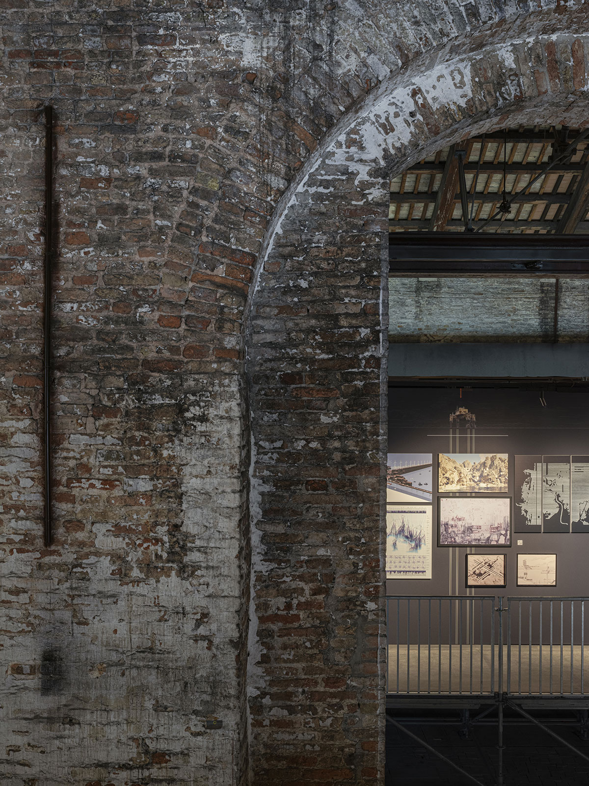 La posizione del Padiglione Italia ha avuto un ruolo chiave nello sviluppo concettuale del nostro intervento. L’Arsenale di Venezia, un tempo il più grande centro produttivo del mondo preindustriale e simbolo del potere politico, economico e militare della città, rappresenta un contesto carico di memoria. All’interno di questo scenario iconico e secolare si trova lo spazio da noi illuminato: le Tese delle Vergini, un edificio risalente al XVI secolo. La sua natura industriale ha guidato la scenografia luminosa, che valorizza le strutture originarie – pareti, soffitti e sostegni – con delicatezza e rispetto.