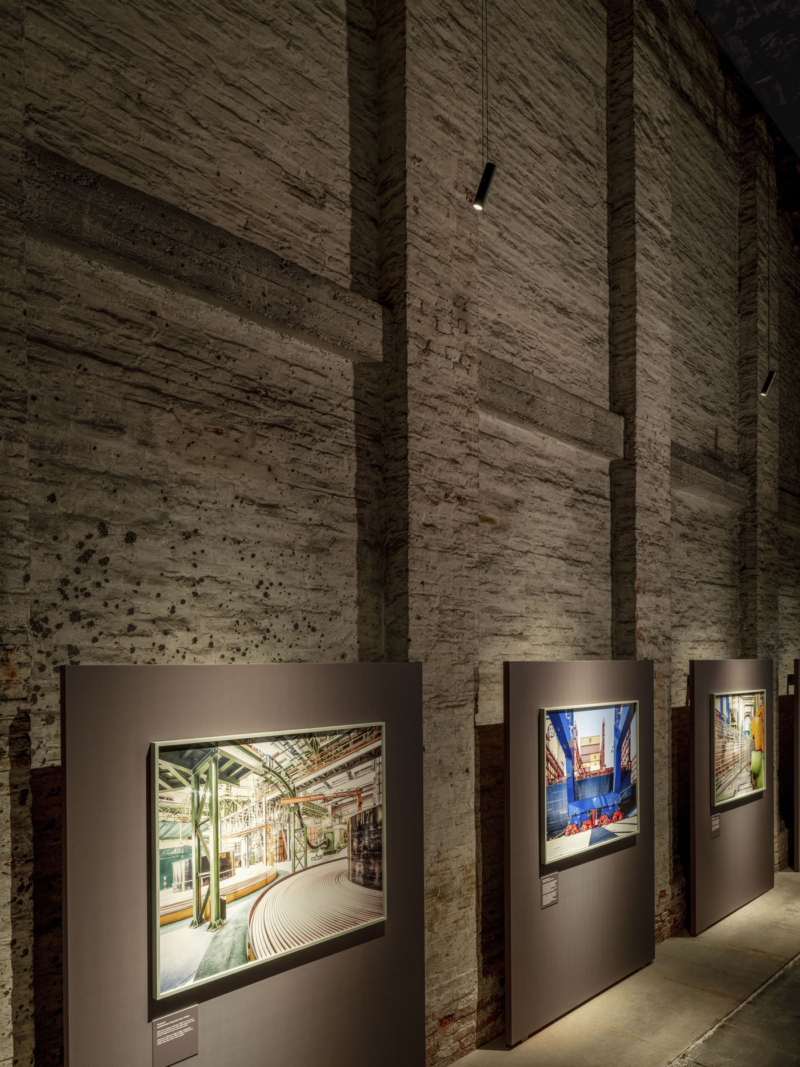 Segnano il percorso espositivo, accentuano le opere presenti e contribuiscono a un’esperienza immersiva e sensoriale, in linea con la nostra filosofia di progetto: Shaping Atmospheres. Le luminose installazioni scelte esaltano il contrasto tra luce e ombra, orientando il cammino del visitatore e svelando le trame materiche dello spazio.