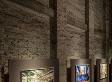 Nel secondo spazio, i proiettori Circus Solo di Antoni Arola illuminano dall’alto le fotografie esposte.