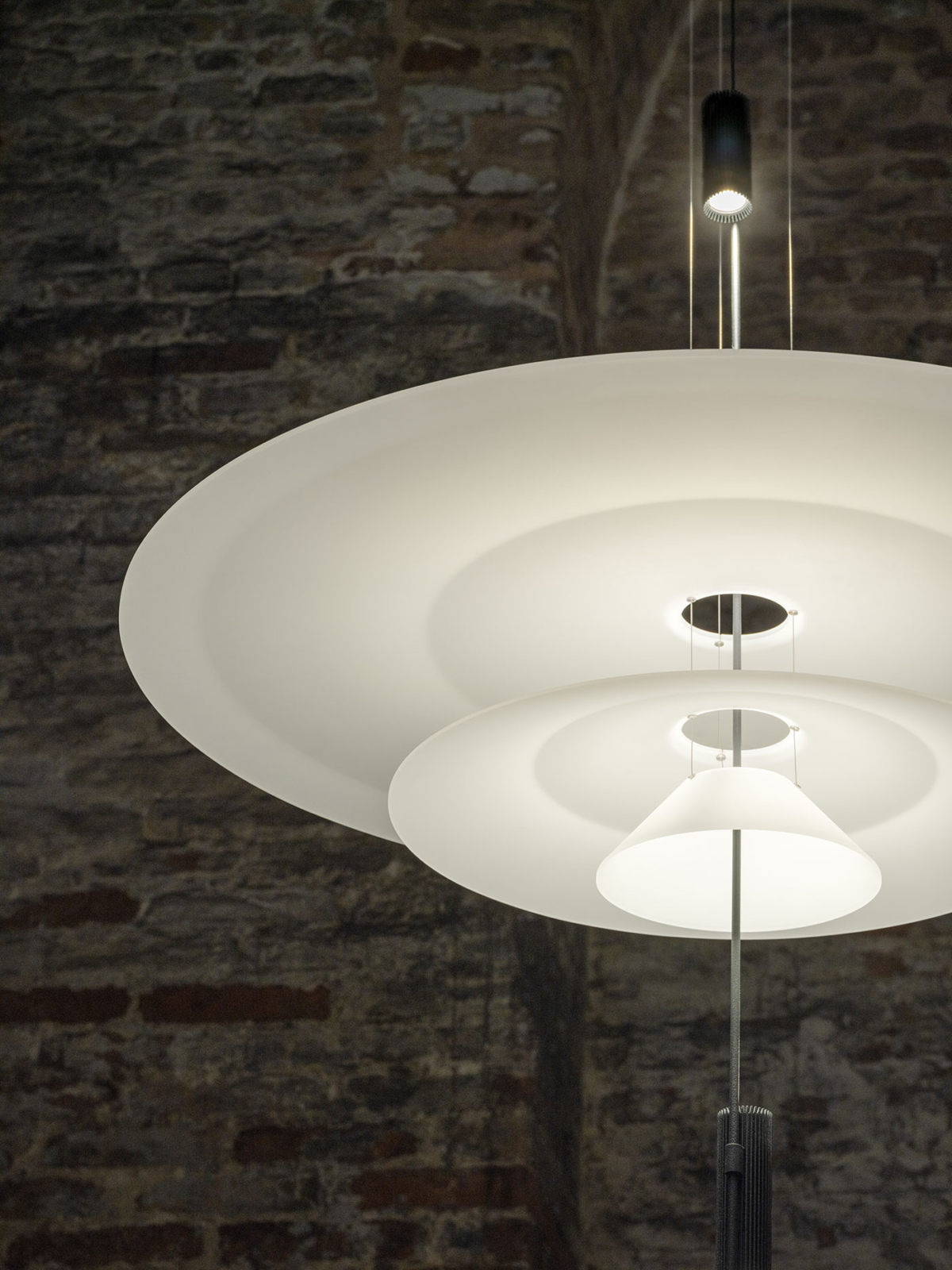 L’obiettivo era quello di rafforzare il dialogo tra la memoria storica dell’ambiente e le nostre creazioni luminose, concepite come parte integrante dell’architettura.