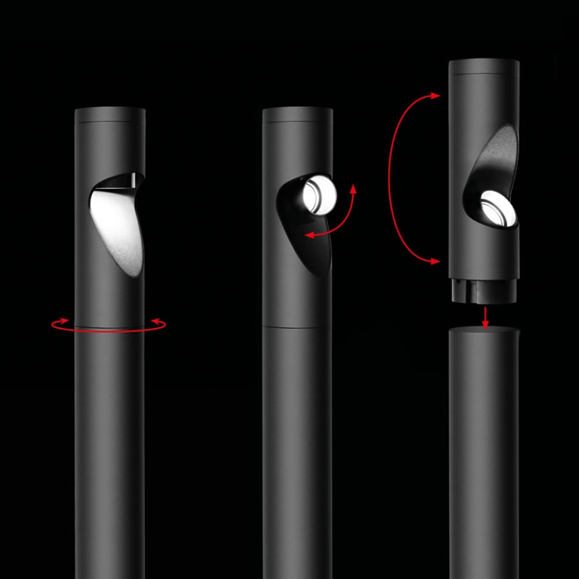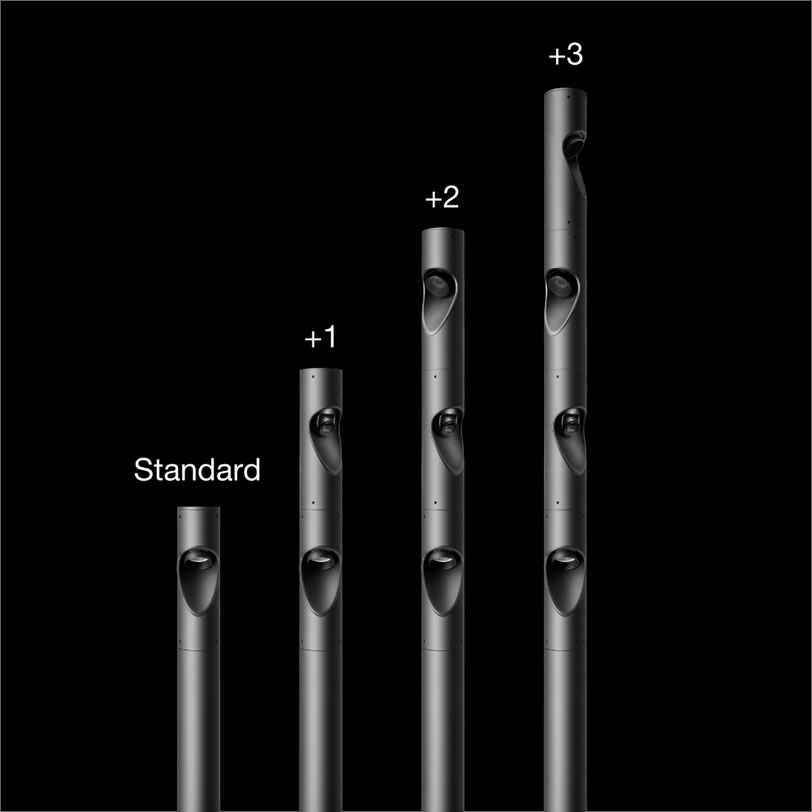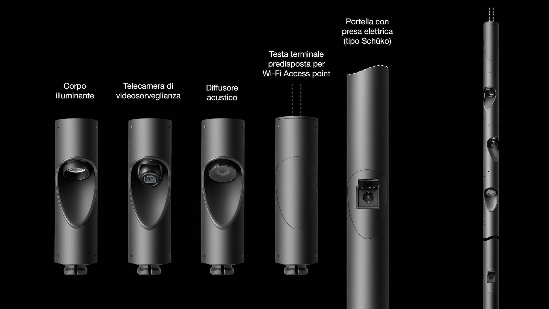 Ciò che colpisce di SHIFT PRO è la sua capacità di adattarsi alle esigenze di ogni contesto grazie a un sistema modulare estremamente flessibile. La struttura può accogliere fino a quattro teste configurabili e orientabili in modo indipendente: ognuna di esse può ruotare di 360° e inclinarsi fino a 90°, permettendo di modulare l’illuminazione in modo preciso e mirato. La luce, però, è solo una delle possibili funzioni. Le teste infatti possono essere sostituite o integrate con moduli dedicati alla videosorveglianza, alla diffusione sonora o alla connettività Wi-Fi, trasformando il lampione in un punto di interazione tra cittadini e ambiente urbano.