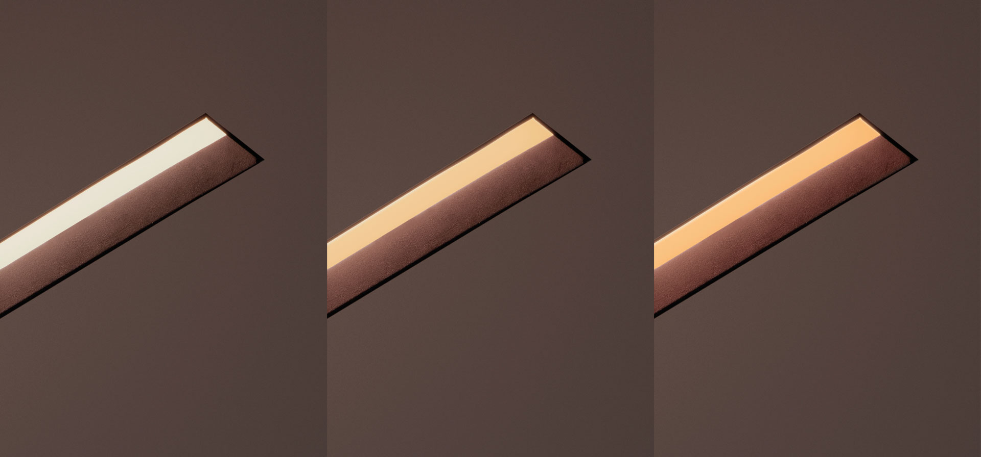 Per questo motivo Vibia ha selezionato 18 diverse tonalità e gradienti cromatici, per permettere di modulare l’illuminazione in modo naturale e armonioso, rispettando il ritmo del giorno e seguendo le esigenze emotive e funzionali di chi abita lo spazio.